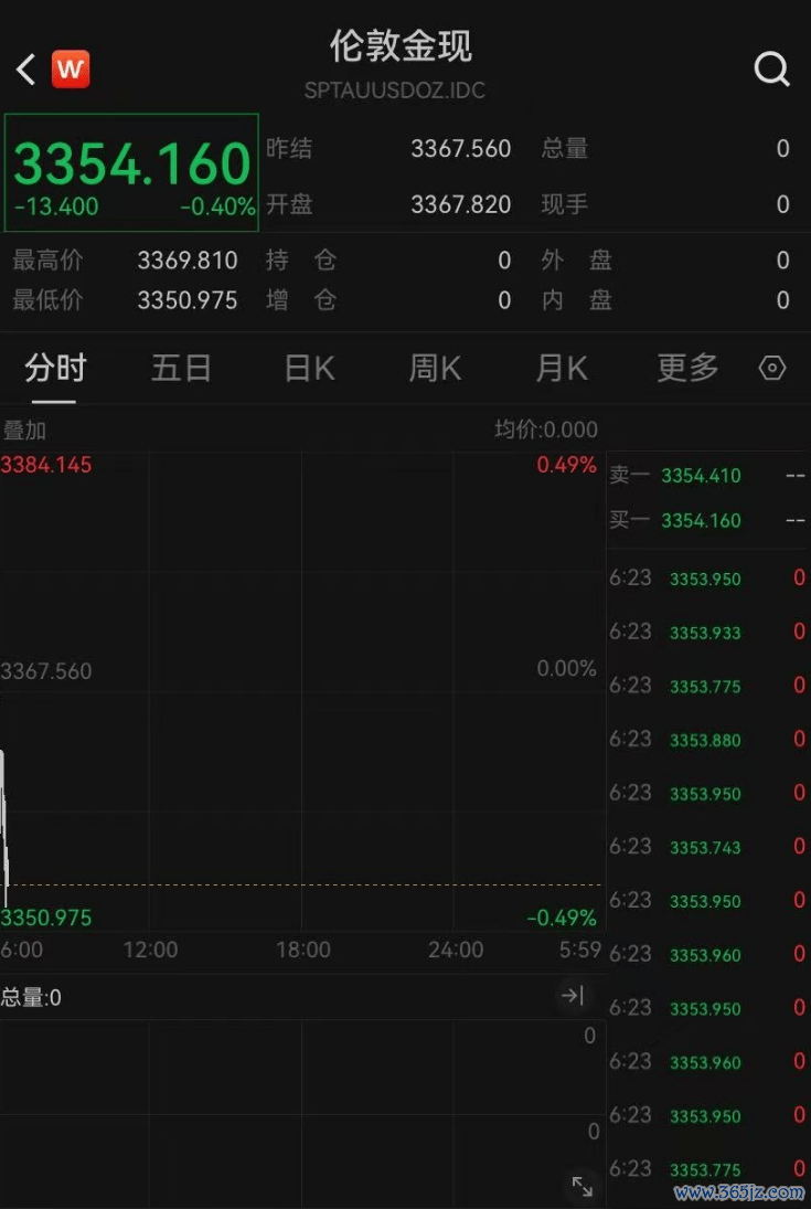 现货黄金跌0.4%。