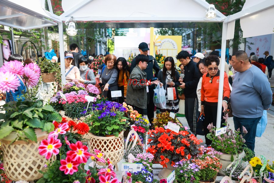 东台好市,市民游客涌入购买鲜花和周边产品。 海沙尔摄